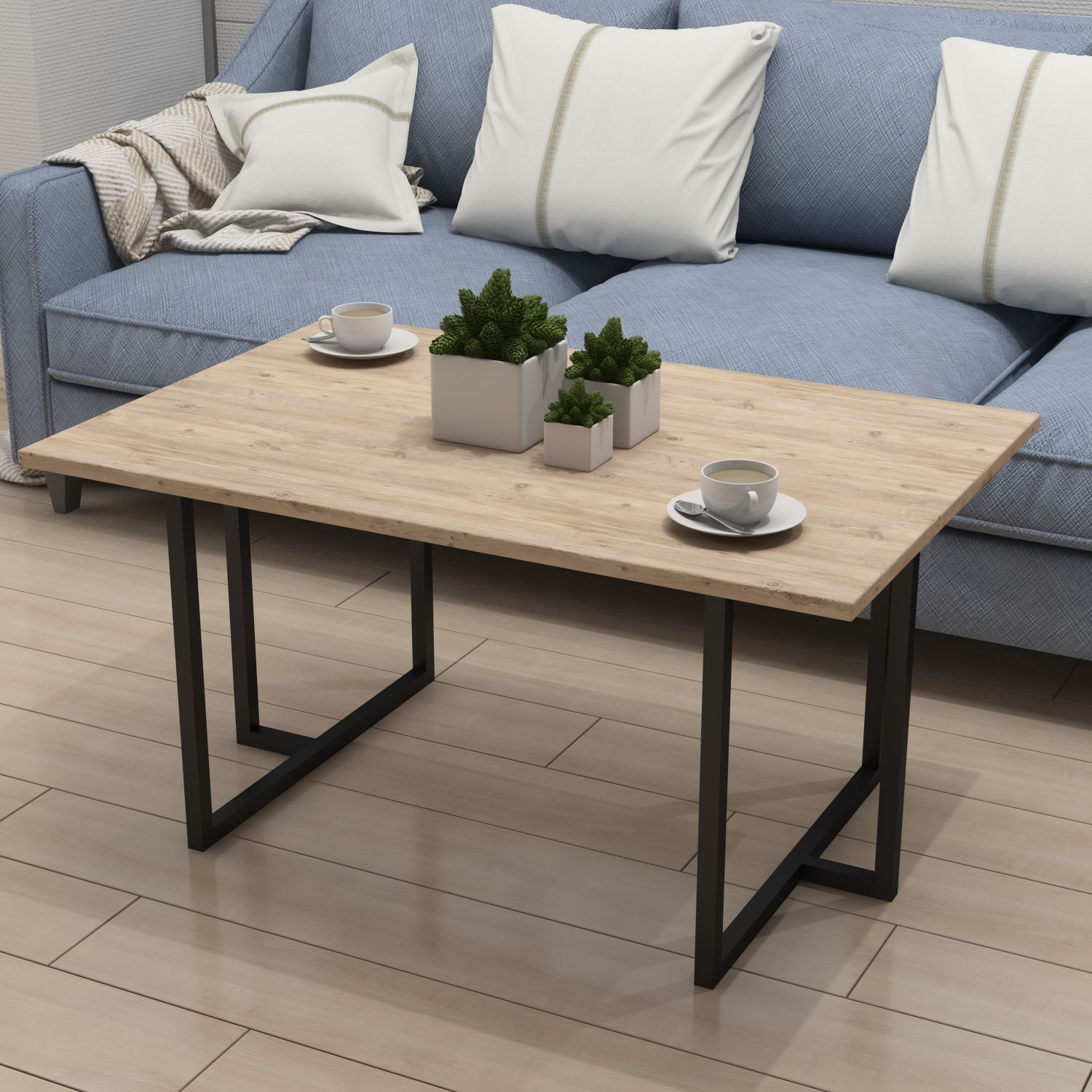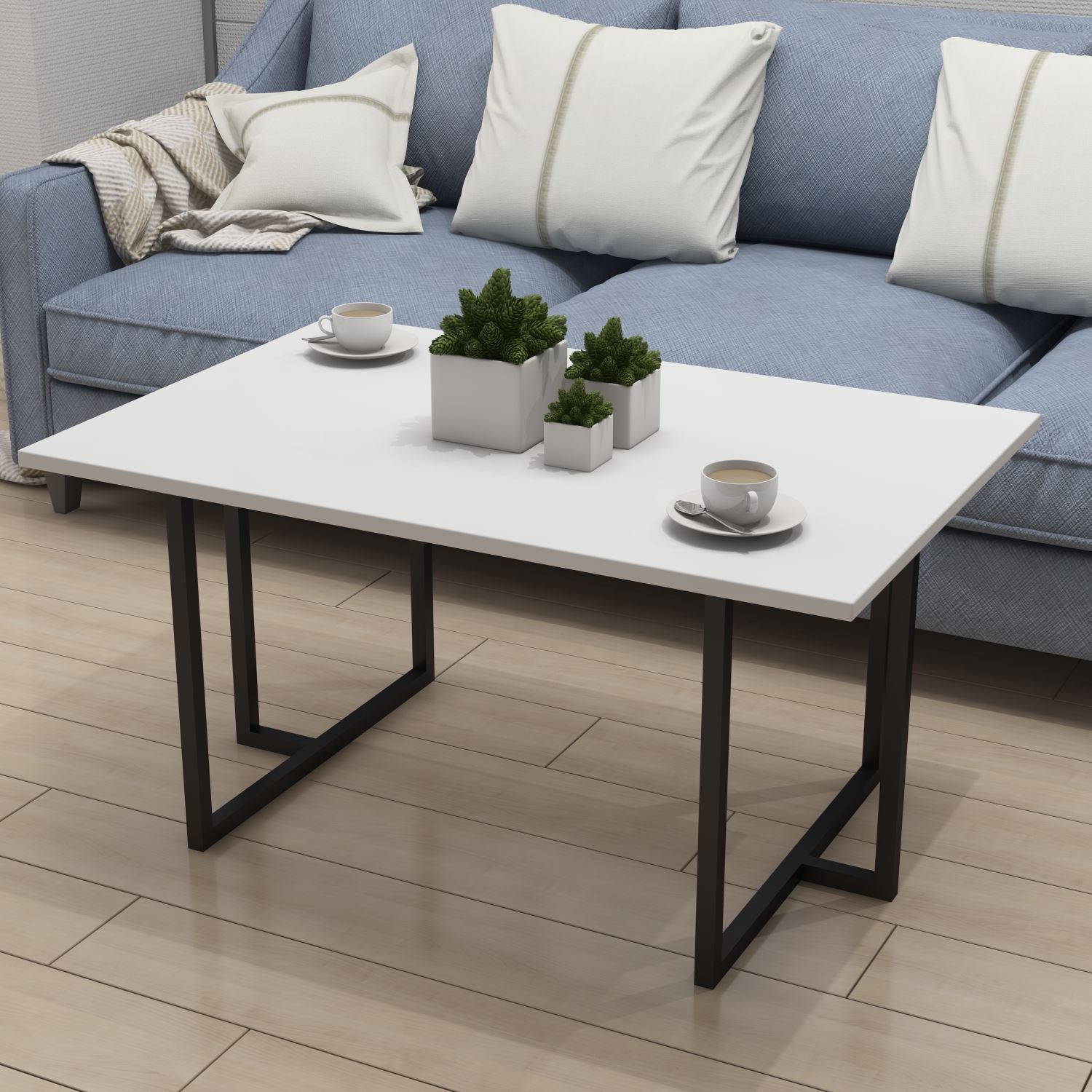 Center table with metal legs.